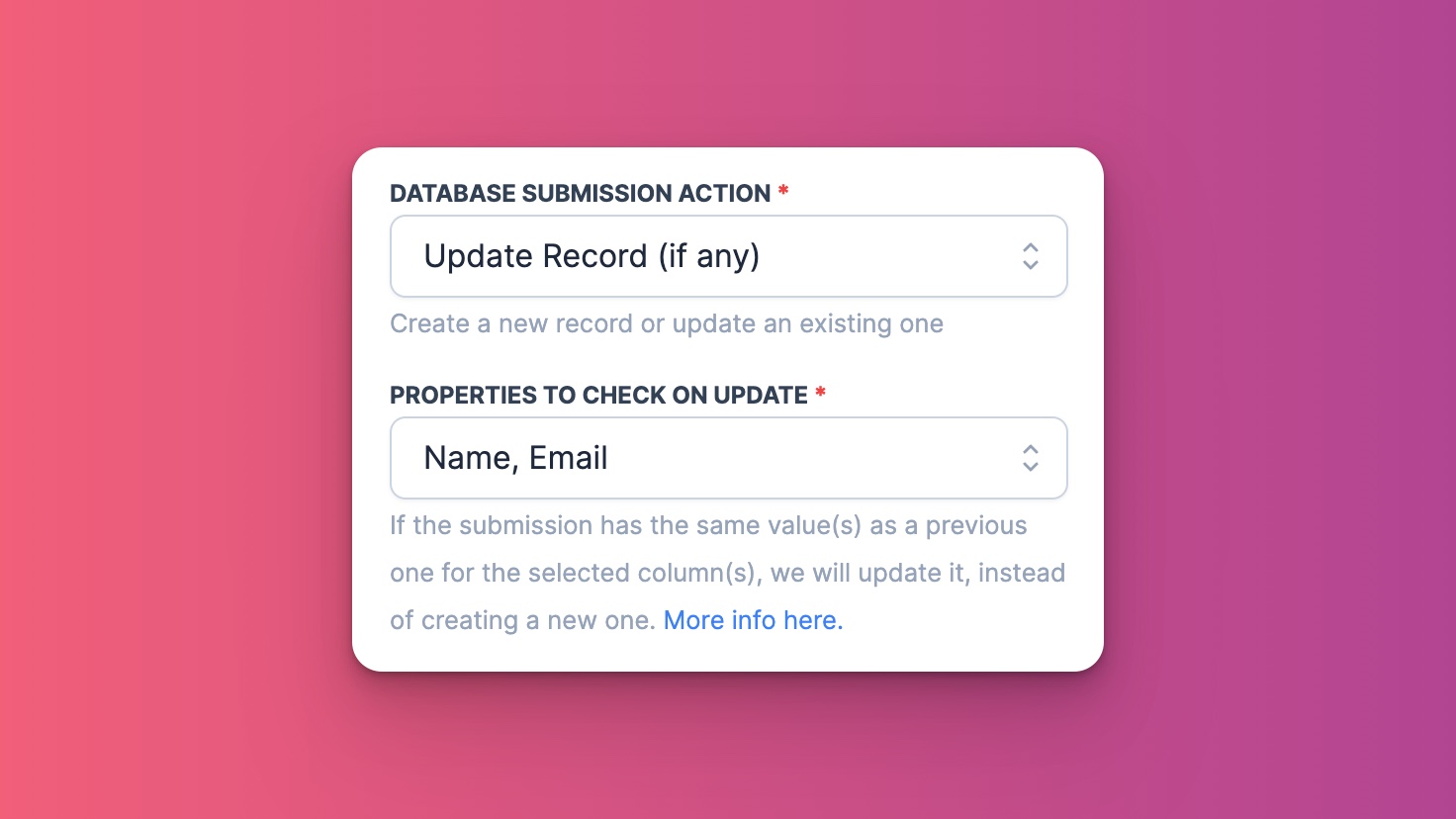 With NotionForms, form respondents can edit their form submissions if you allow them to. When a respondents submits a form that's editing a previous submission, NotionForms directly update the associated database record in Notion. This feature is really convenient, for various cases such as event attendance, or CMS external updates. Note that this is a Team feature.